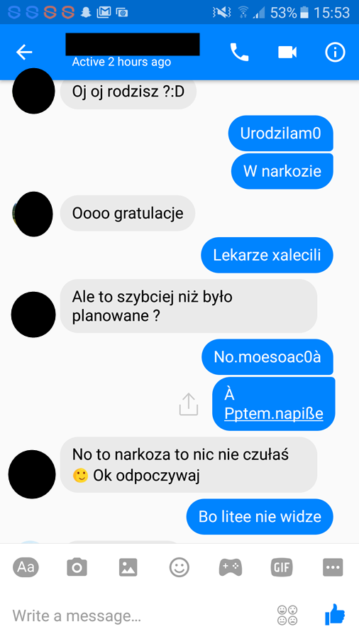 Tym którym odpisałam z opóźnieniem lub umknęło mi by wrócić do rozmowy – przepraszam! Jednak na swoje wytłumaczenie mam niezbite dowody, że czasami lepiej nie dotykać telefonu, np. po narkozie. 😀