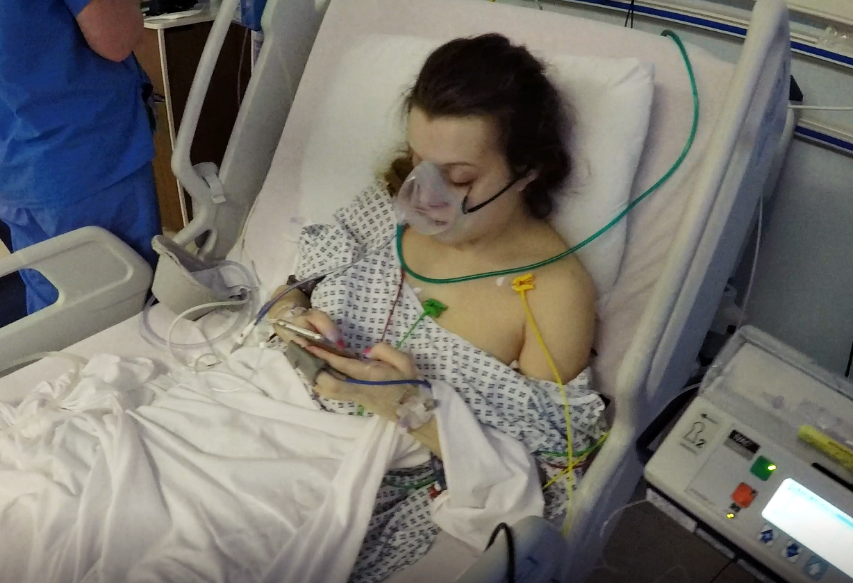 Na poniższym zdjęciu ja, człowiek aktywny w social mediach ZAWSZE, nawet na intensywnej terapii, próbuję powiadomić najbliższych (mamę, przyjaciół) o porodzie.