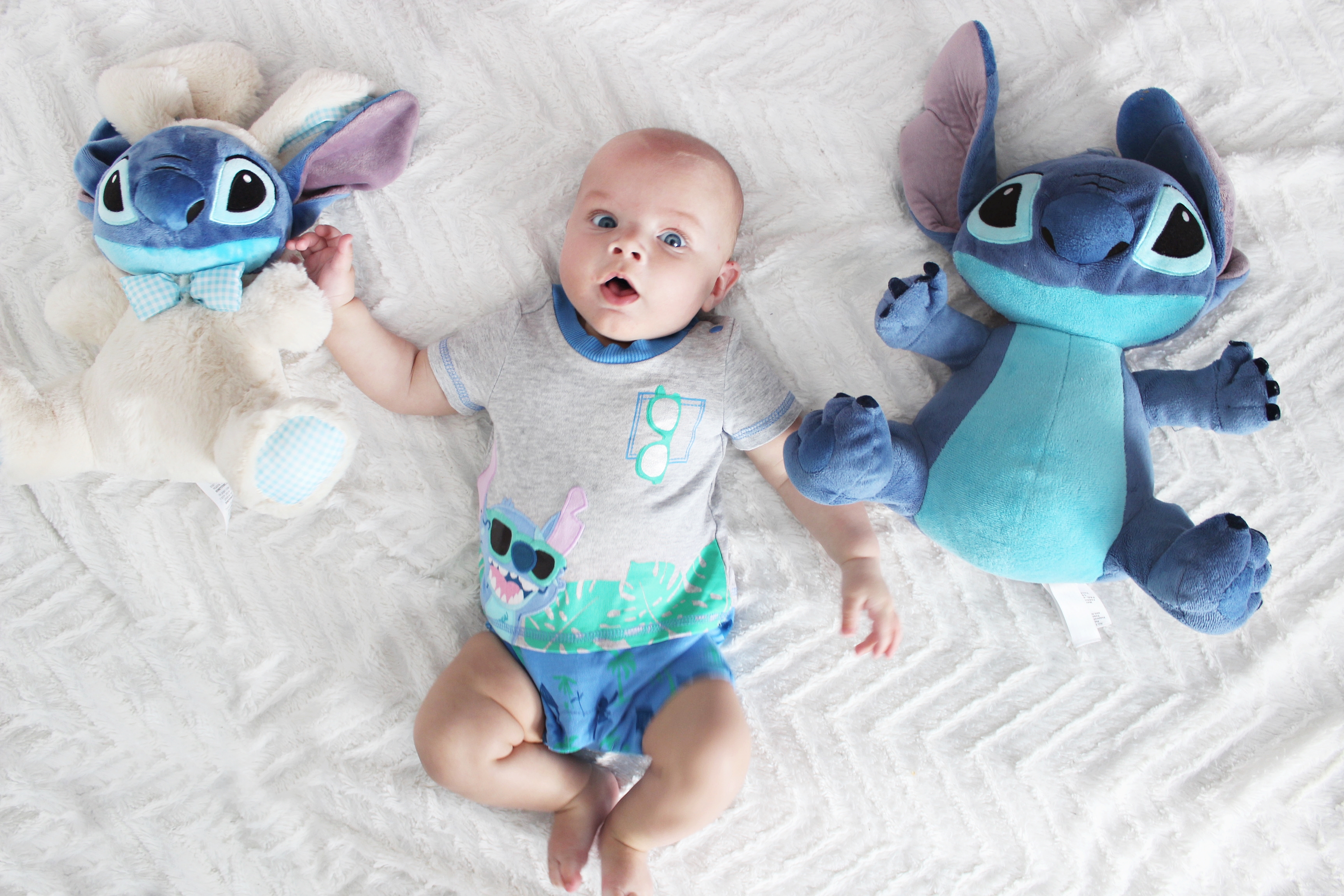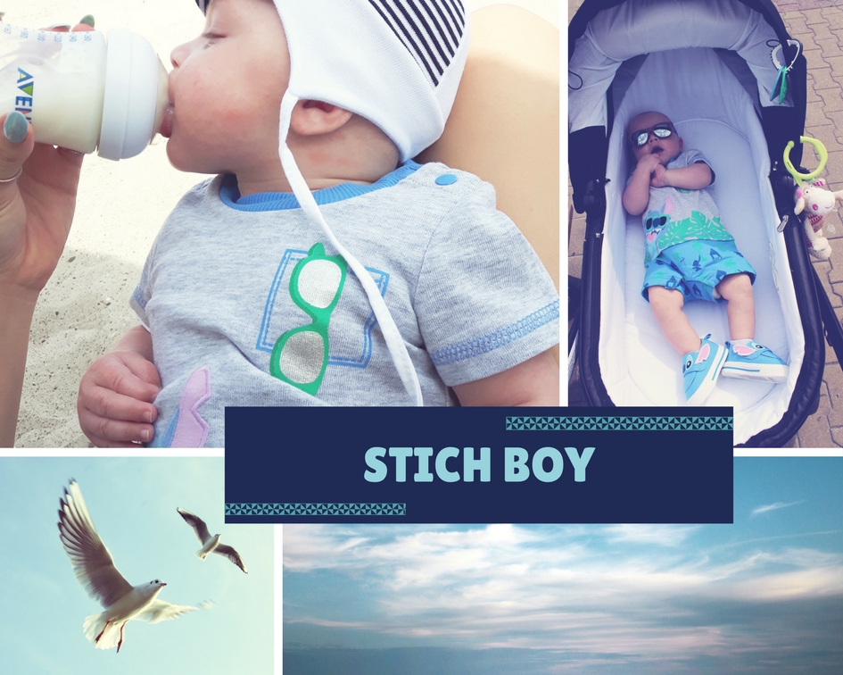 Jestem turbo fanką tej postaci, a raczej jej kreacji. Jak porąbana psychofanka mam już kapcie, kubek, 2 misie… I ostatnio znalazłam również coś, na czego punkcie oszalałam. Ciuchy z postacią Sticha, buty i okulary dla niemowlęcia.